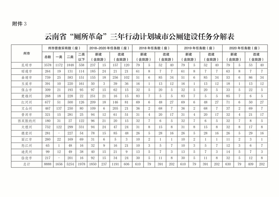 3.云南省“廁所革命”三年行動計(jì)劃城市公廁建設(shè)任務(wù)分解表