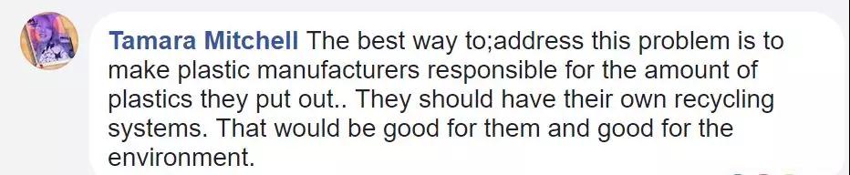“解決這個問題最好的方式應(yīng)該是讓那些塑料制造商對他們生產(chǎn)的塑料負(fù)責(zé),他們應(yīng)該有自己的回收系統(tǒng),這對他們自己有利的同時也有益于我們的環(huán)境?!?/p>