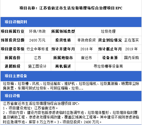 中項(xiàng)網(wǎng)獨(dú)家授權(quán)北極星固廢網(wǎng)發(fā)布最新垃圾處理項(xiàng)目(2018年10月22日更新),其中包括垃圾中轉(zhuǎn)站建設(shè)項(xiàng)目、垃圾發(fā)電廠配套填埋場(chǎng)項(xiàng)目、生活垃圾綜合處理項(xiàng)目等。具體內(nèi)容如下: