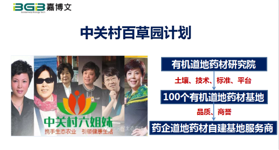 這個(gè)項(xiàng)目,我們正在發(fā)起20億的基金,由中關(guān)村20幾位企業(yè)家共同打造平臺(tái),共同背書(shū),同時(shí)運(yùn)用中關(guān)村最好的技術(shù)集成,達(dá)到跟日本、韓國(guó)在中國(guó)采購(gòu)中藥的標(biāo)準(zhǔn),甚至還要好的標(biāo)準(zhǔn),引導(dǎo)中國(guó)的藥材出口。例如,在中關(guān)村百草園計(jì)劃中,國(guó)內(nèi)首次實(shí)現(xiàn)有機(jī)三七的種植,此外有機(jī)種植的枸杞現(xiàn)在也實(shí)現(xiàn)全部出口。