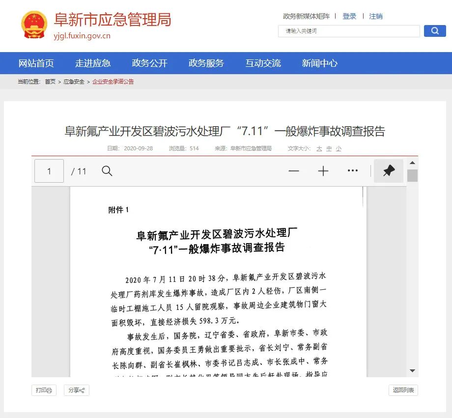 文章導(dǎo)讀近日,阜新市應(yīng)急管理局已經(jīng)發(fā)布了《阜新氟產(chǎn)業(yè)開發(fā)區(qū)碧波污水處理廠“7.11”一般爆炸事故調(diào)查報告》(下稱《報告》)。結(jié)果顯示,爆炸的直接原因是該污水廠違規(guī)使用氯酸鈉催化劑,在儲存時與赤砂糖發(fā)生化學(xué)反應(yīng)發(fā)生爆炸,爆炸現(xiàn)場形成的沖擊波相當(dāng)1.0-1.5tTNT當(dāng)量。還記得去年7月12日,遼寧省阜...