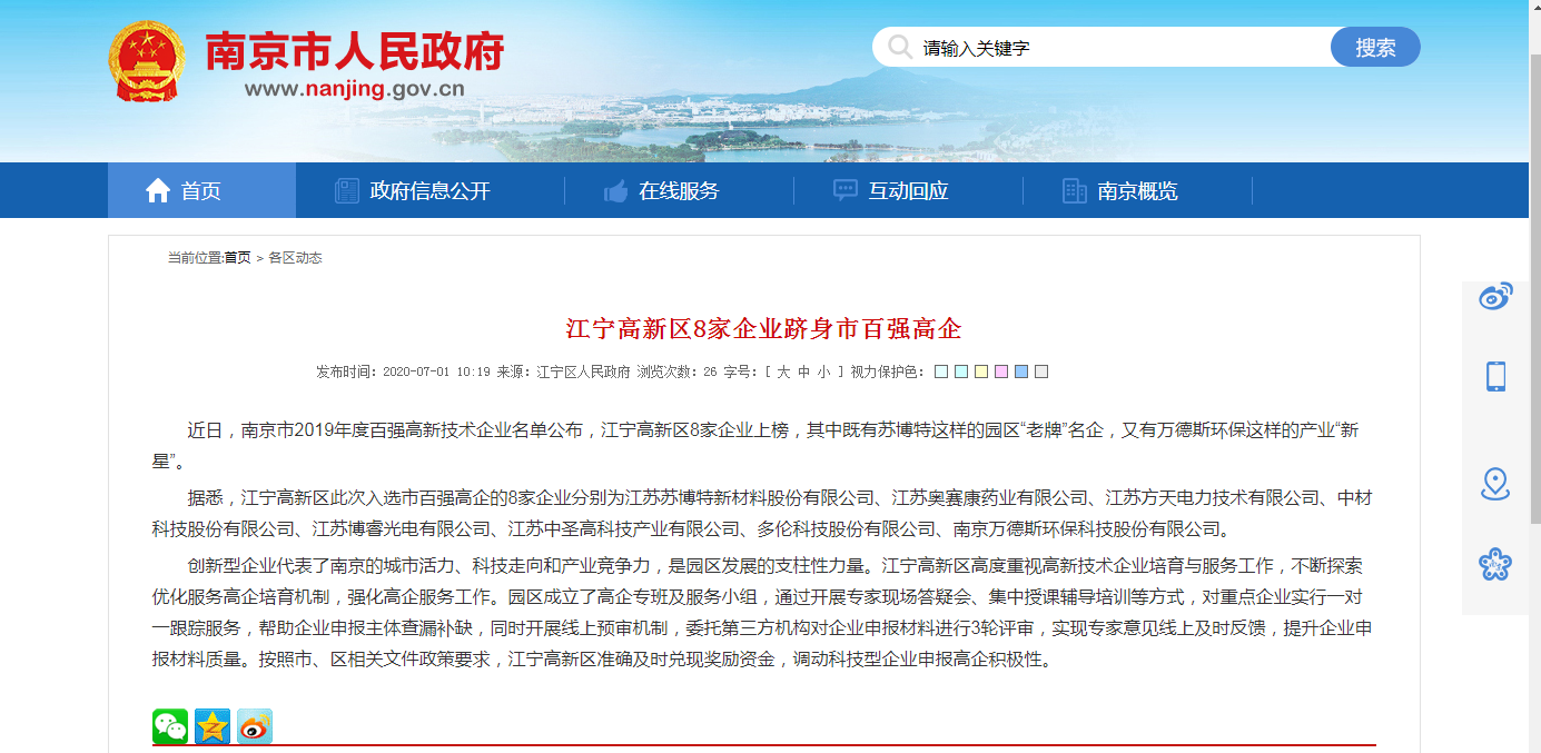 ——新的榮譽、新的“百強”、新的起航,萬德斯入選“江蘇省百強創(chuàng)新型企業(yè)”、“南京市百強高新技術企業(yè)”近日,江蘇省科技情報研究與江蘇省科技發(fā)展戰(zhàn)略研究院分別發(fā)布了“南京市2019年度百強高新技術企業(yè)”名單、“2019年江蘇省百強創(chuàng)新型企業(yè)”名單,南京萬德斯環(huán)??萍脊煞萦邢薰就瑫r位列兩張榜單之中,成為...