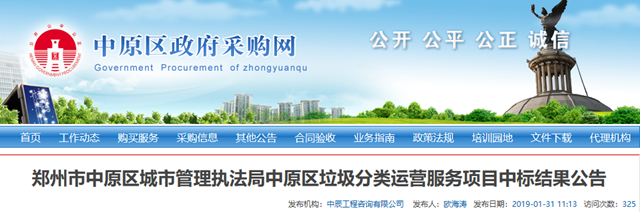 鄭州市中原區(qū)垃圾分類運(yùn)營(yíng)服務(wù)項(xiàng)目發(fā)布中標(biāo)結(jié)果公告,鄭州傲藍(lán)得環(huán)??萍加邢薰竞驼憬?lián)運(yùn)環(huán)境工程股份有限公司分獲第一標(biāo)段和第四標(biāo)段。 據(jù)悉,項(xiàng)目的服務(wù)內(nèi)容為:鄭州市中原區(qū)10個(gè)小區(qū)居民日常生活垃圾分類減量工作,并對(duì)小區(qū)生活垃圾進(jìn)行“四分類”(可回收垃圾、有害垃圾、廚余垃圾、其它...